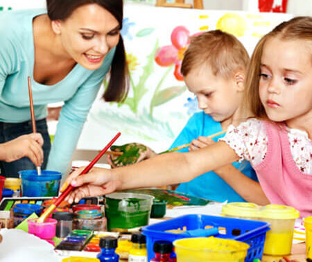 A play-based curriculum focuses on active, hands-on learning through meaningful play. Learning centers are arranged throughout the classroom to support different areas of development, such as dramatic play (dress-up and kitchen), blocks and construction, art and creative expression, sensory exploration with materials like sand, water, and playdough, science and discovery, literacy through books and writing materials, and math using manipulatives. The curriculum includes multiple types of play, such as free play led by children, guided play shaped by teacher goals, sensory play using textures, sounds, and smells, and outdoor play that encourages large-motor growth and nature exploration. Lessons are supported through theme-based units that follow children’s interests—like animals, seasons, or community helpers—while integrating literacy, math, science, and art skills. Each day also includes group learning time, such as circle time for songs, stories, conversations, and social interaction.